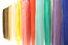 人毛やたんぱく質毛の場合はアイロンなどの使用に耐えられますが、化学繊維などの場合の多くのものは、アイロンなどの熱処理は、縮れたり熔けたりする場合があります。